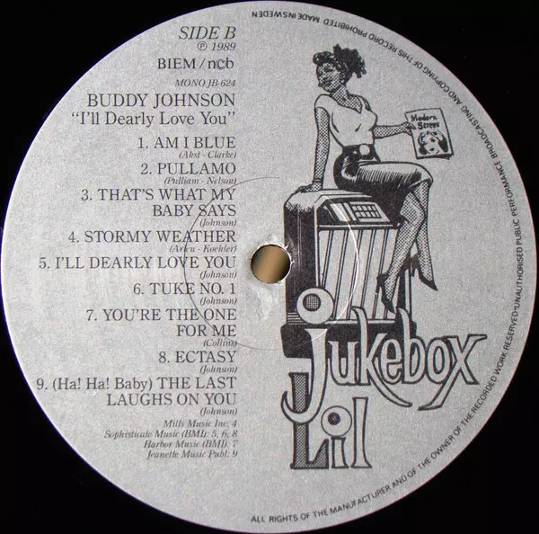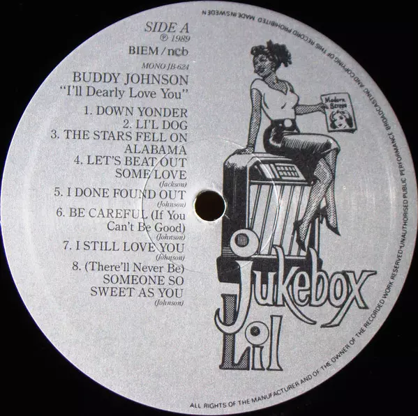 Buddy Johnson And His Orchestra: I'll Dearly Love You version on vinyl LP in Standard edition. This particular edition was published in Sweden in publishing company Jukebox Lil on 25. December 1999. Album can be classified in the genre Blues.