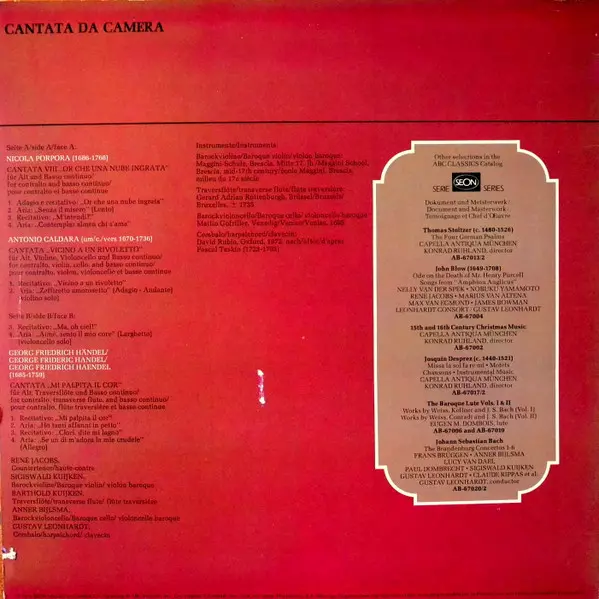 | Artist | Georg Friedrich Händel | Antonio Caldara | René Jacobs | Nicola Porpora | Anner Bylsma | Sigiswald Kuijken | Gustav Leonhardt | Barthold Kuijken |