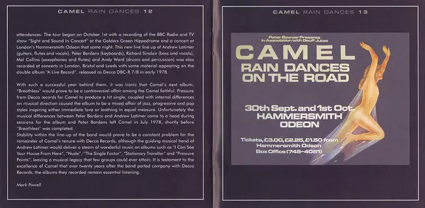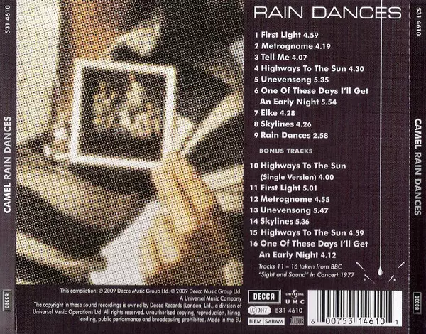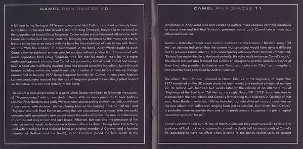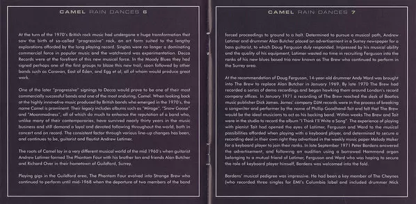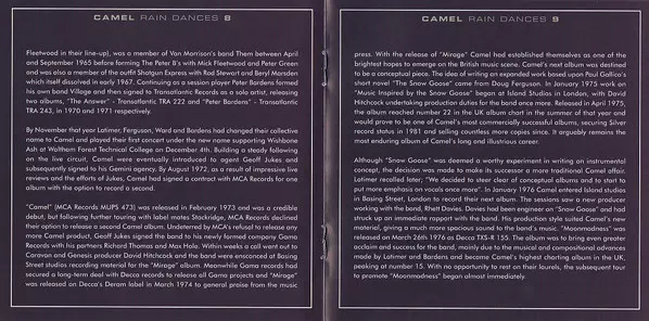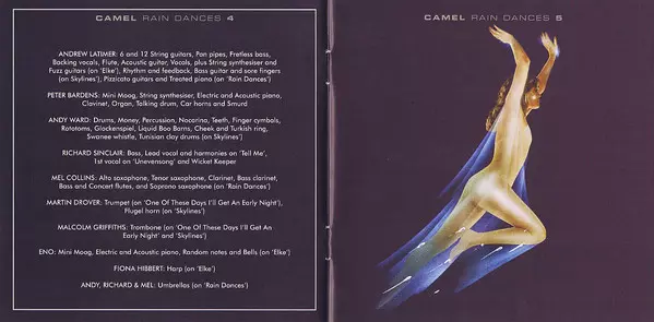 On their fifth album, the British prog-rock combo is in top form. Rain Dances is arguably the band's most consistent album Camel. Caravan co-founder Richard Sinclar on bass is an asset to the band, and Mel Collins' sax and horn parts are among the album's highlights.