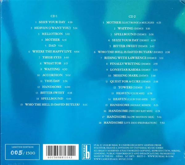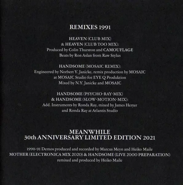 Camouflage: Meanwhile LTD | NUM version on 2CD in limited individually numbered Remastered edition. This particular edition was published in Germany in publishing company Bureau B on 13. August 2021. Album spans genres Rock, Electronic, New Wave and Indie Rock.