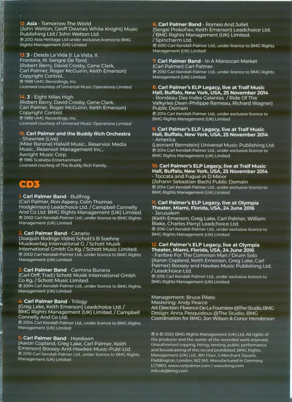 CD3-12 | Carl Palmer's ELP Legacy: Fanfare For The Common / Drum Solo | 20:33 min | |