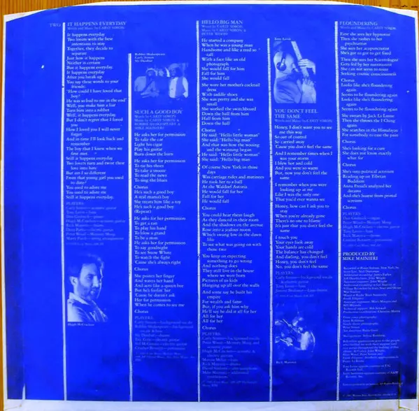 Bass Tony Levin | Drums Rick Marotta | Electric Guitar Hugh McCracken | Organ Don Grolnick | Percussion 'Crusher' Bennett | Synthesizer [Memory Moog] Peter Wood (2) | Words By, Music By Carly Simon