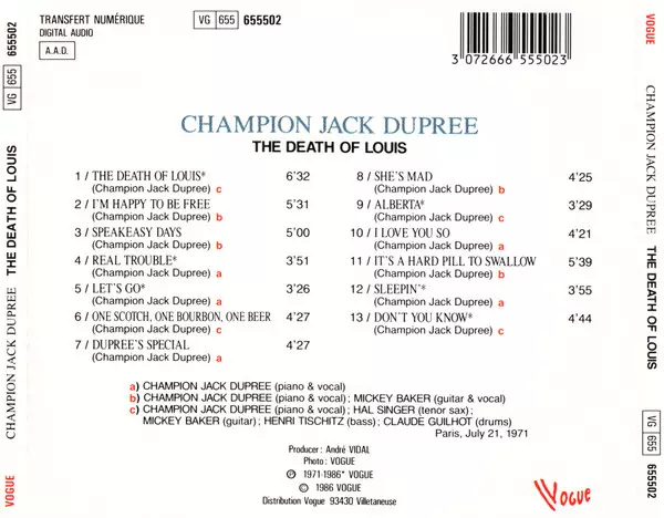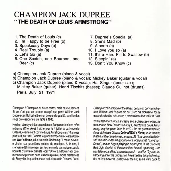 | Artist | Champion Jack Dupree | Mickey Baker | Hal Singer |