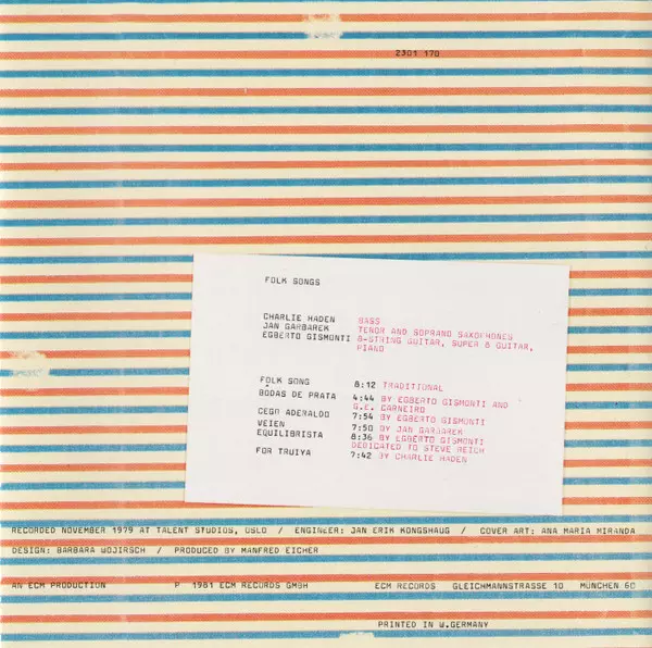 | Artist | Charlie Haden | Jan Garbarek | Egberto Gismonti |