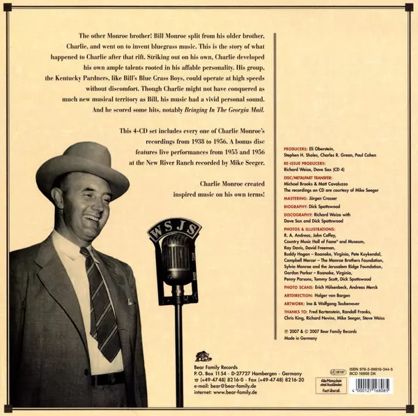 Charlie Monroe: I'm Old Kentucky Bound version on 4CD in Standard edition. This particular edition was published in Germany in publishing company Bear Family Records on 11. March 2011. Album can be classified in the genre Folk, World, & Country. 4 CD + Buch.