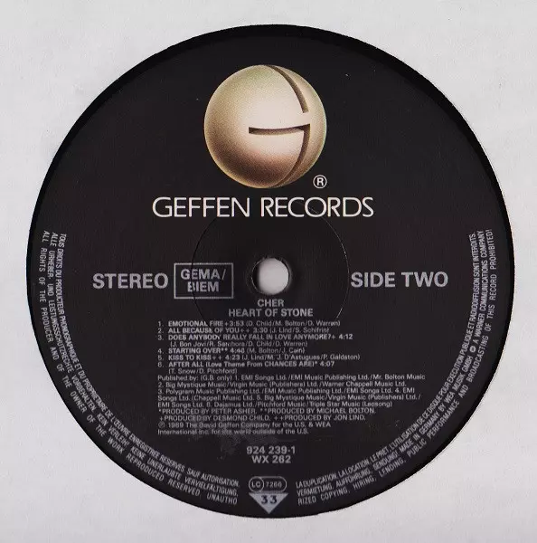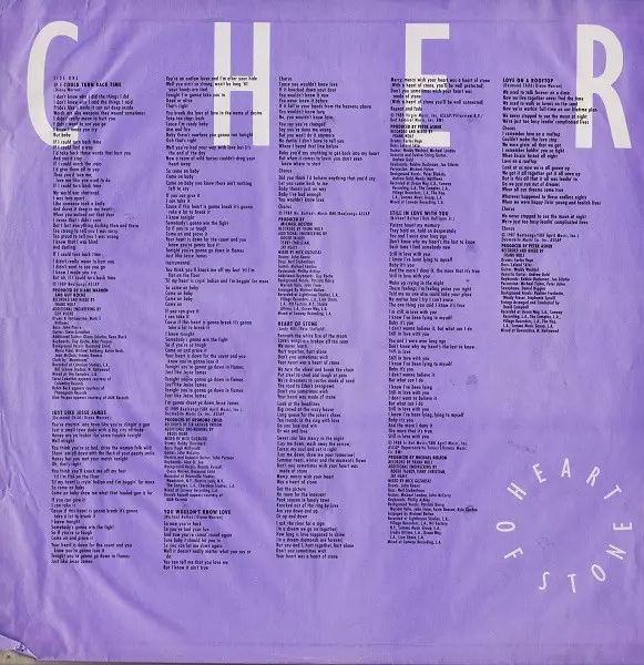 Cher: Heart Of Stone version on vinyl LP in Standard edition. This particular edition was published in Europe and UK in publishing company Geffen Records year 1989. Album spans genres Rock, Pop Rock and Soft Rock. 2nd Version Vinyl.