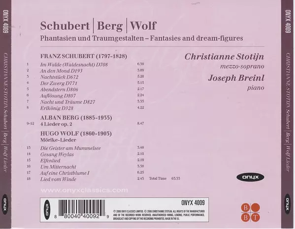 Artist | Franz Schubert | Alban Berg | Hugo Wolf | Christianne Stotijn | Joseph Breinl |
