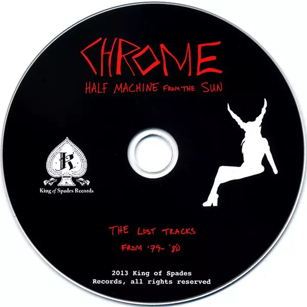 Chrome: Half Machine From The Sun, The Lost Tracks From '79-'80 version on CD in Standard edition. This particular edition was published in USA in publishing company King Of Spades Records on 5. November 2013. Album spans genres Rock, Electronic, Post-Punk, Experimental and Space Rock.