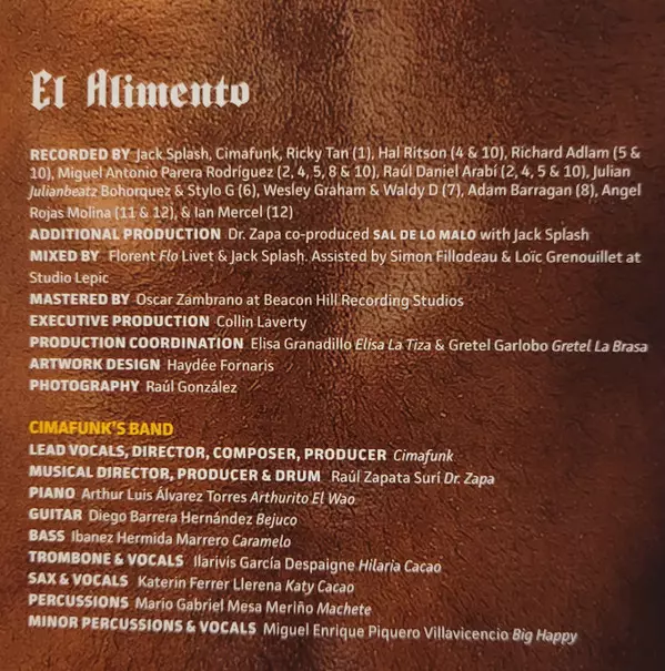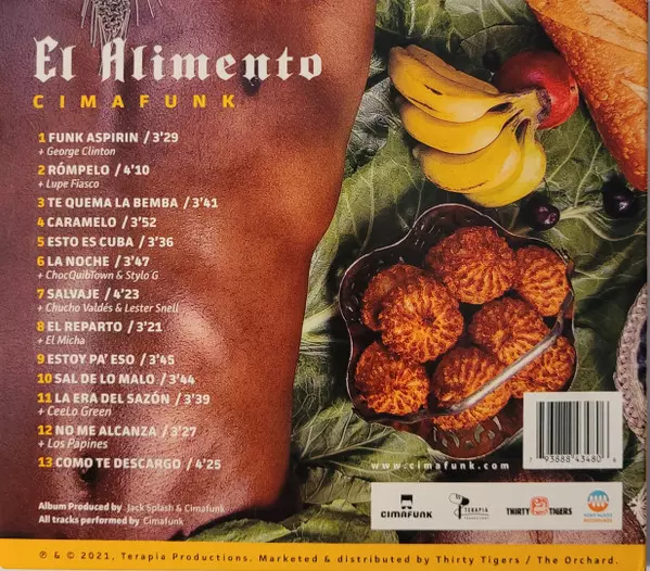 Cimafunk: El Alimento version on CD in Standard edition. This particular edition was published in USA in publishing company Terapia Productions in cooperation with Mono Mundo Recordings on 8. December 2023. Album can be classified in the genre Funk / Soul.