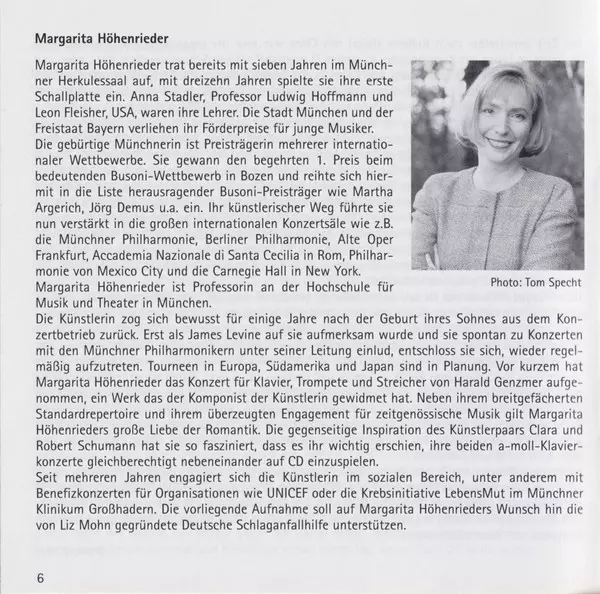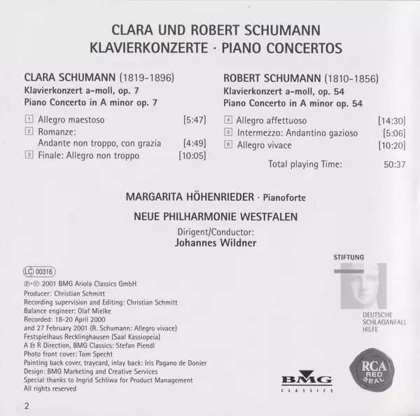 | Artist | Robert Schumann | Clara Schumann | Johannes Wildner | Margarita Höhenrieder | Neue Philharmonie Westfalen |