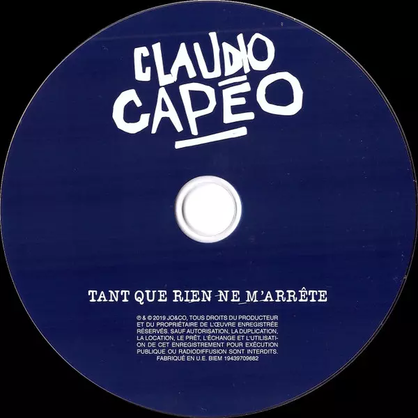 Claudio Capéo: Tant Que Rien Ne M'arrête version on CD in Standard edition. This particular edition was published in France in publishing company Jo & Co on 3. May 2019. Album spans genres Pop, Chanson and Europop.