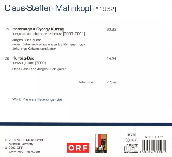 | Artist | Jürgen Ruck | Johannes Kalitzke | Elena Casoli | Claus-Steffen Mahnkopf | Österreichisches Ensemble Für Neue Musik |
