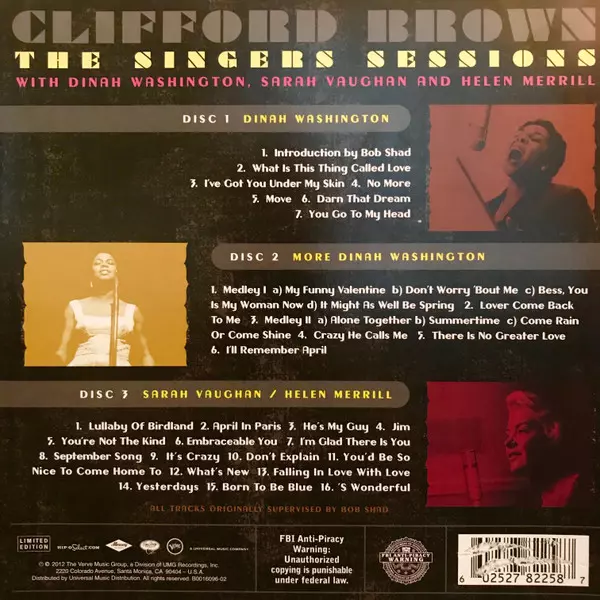 | Artist | Sarah Vaughan | Dinah Washington | Clifford Brown | Helen Merrill |