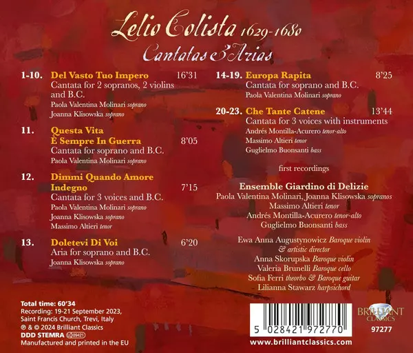 Artist | Joanna Klisowska | Ensemble Giardino Di Delizie | Ewa Anna Augustynowicz | Lelio Colista | Paola Valentina Molinari | Massimo Altieri | Andres Montilla | Guglielmo Buonsanti |