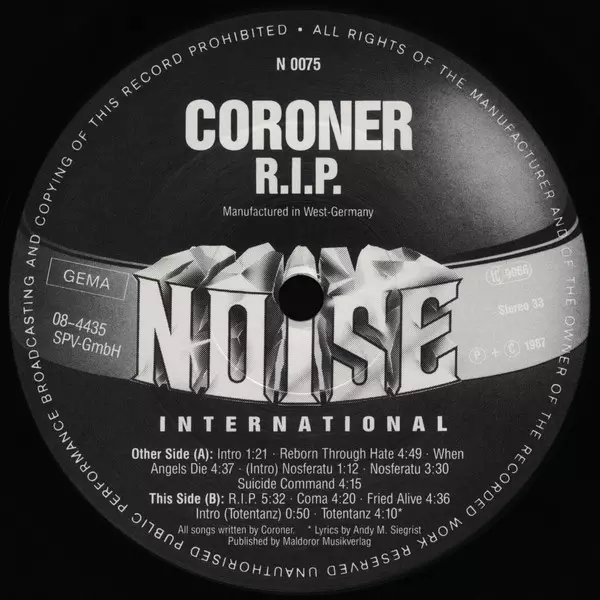 | Artist | Coroner |