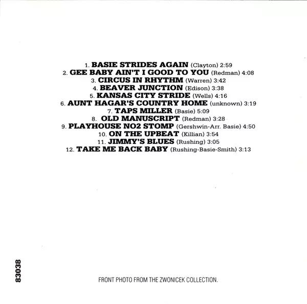 | Artist | Count Basie | Lester Young | Buddy Tate | Ted Donnelly |
