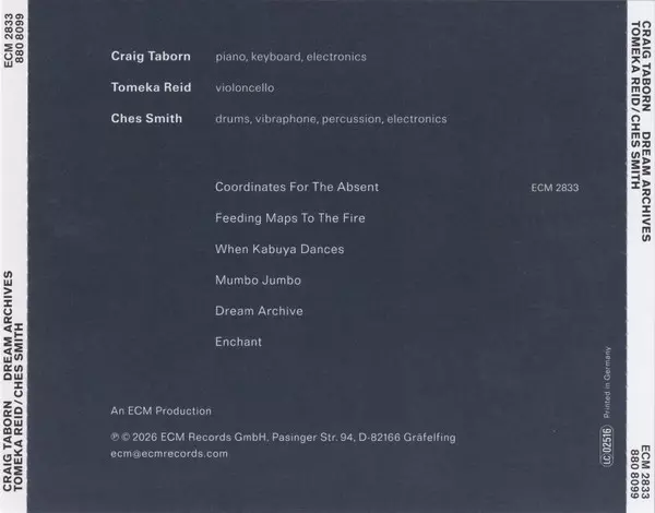 | Artist | Craig Taborn | Ches Smith | Tomeka Reid |