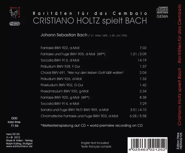 | Artist | Johann Sebastian Bach | Cristiano Holtz |