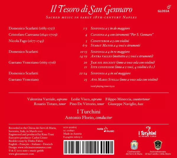 | Artist | Domenico Scarlatti | Antonio Florio | Cappella Della Pietà De' Turchini | Gaetano Veneziano | Cristofaro Caresana | Francesco Nicola Fago |