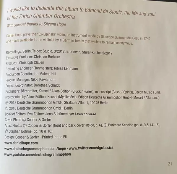 | Artist | Daniel Hope | Zürcher Kammerorchester |