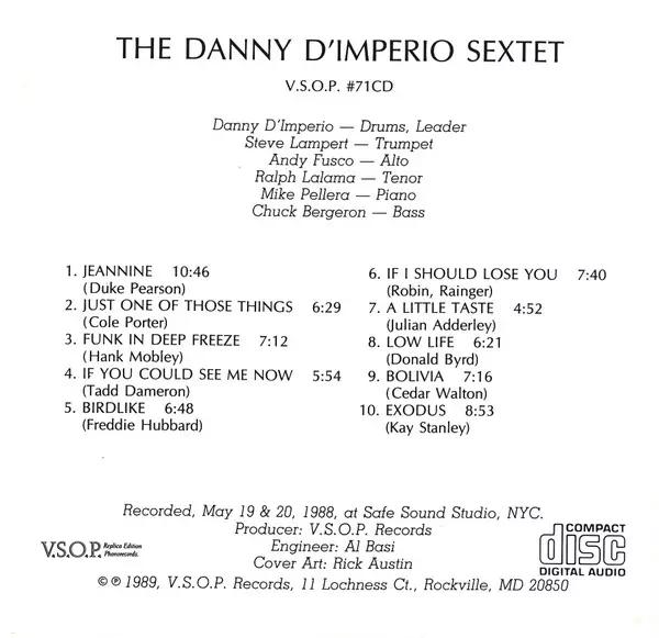 | Artist | Danny D'Imperio Sextet |
