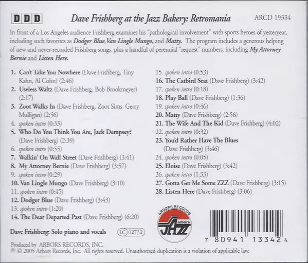 | Title | Dave Frishberg At The Jazz Bakery: Retromania |