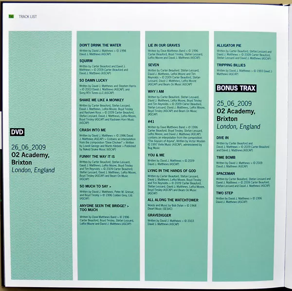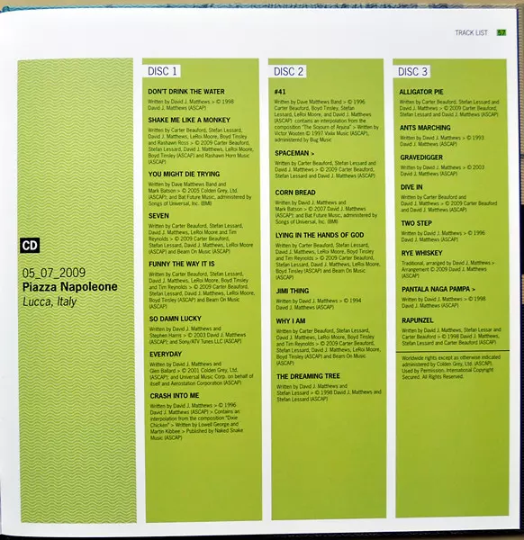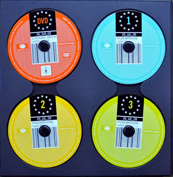 Dave Matthews Band: Europe 2009 LTD version on 3CD/DVD/Box Set in limited edition. This particular edition was published in Europe in publishing company Bama Rags Records in cooperation with Eagle Records on 8. June 2010. Album spans genres Rock and Classic Rock. 5.7.2009 3CD DVD + Fotobuch & Limited Edition.