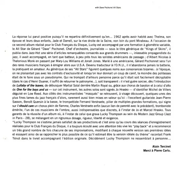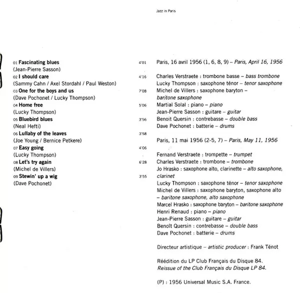 | Artist | Lucky Thompson | Gérard Pochonet And His Orchestra |