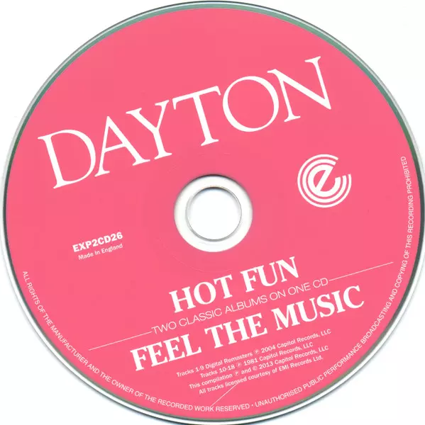 Dayton: Hot Fun / Feel The Music version on CD in Remastered edition. This particular edition was published in United Kingdom in publishing company Expansion on 26. March 2013. Album spans genres Funk / Soul, Soul, Funk and Disco.