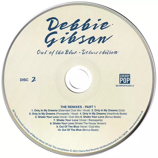 Debbie Gibson: Out Of The Blue DLX version on 3CD/DVD in deluxe edition. This particular edition was published in United Kingdom in publishing company Cherry Pop on 2. May 2025. Album spans genres Pop, Electronic and Synth-pop. Deluxe Edition.