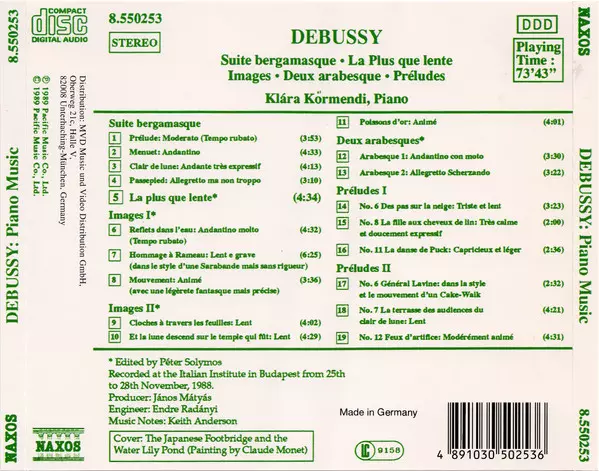 | Title | Piano Music - Suite Bergamasque / La Plus Que Lente / Images / Deux Arabesque / Préludes |