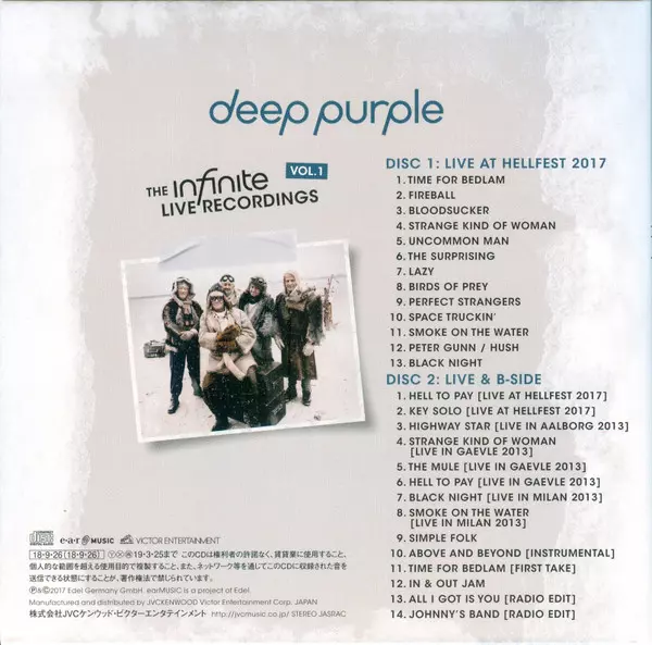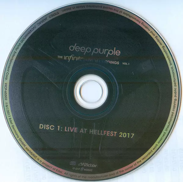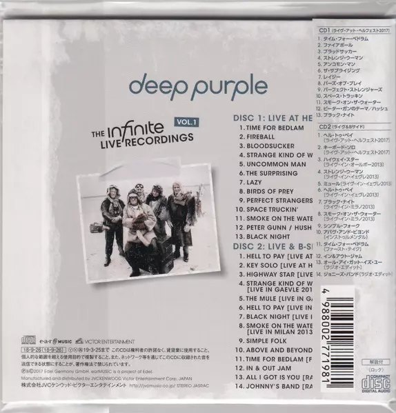 Deep Purple: The Infinite Live Recordings Vol.1 LTD version on 2CD in limited edition. This particular edition was published in Japan in publishing company Victor in cooperation with Ear Music on 5. October 2018.