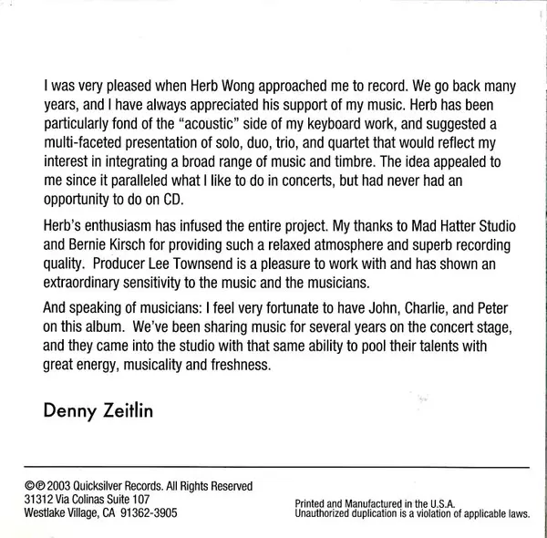 | Artist | Denny Zeitlin |