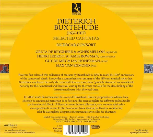 Dieterich Buxtehude: Kantaten version on 2CD in Standard edition. This particular edition was published in Europe in publishing company Ricercar on 3. April 2020. Album spans genres Classical and Baroque.