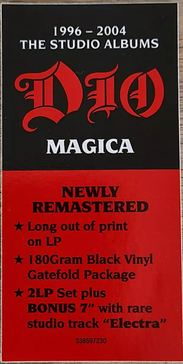The 2LP set was originally released in 2000 with the line-up of Dio: Ronnie James Dio (vocals), Craig Goldy (guitar), Jimmy Bain (bass) and Simon Wright (drums). The long unavailable 180gram vinyl of Magica is now out with the original track list, story for Magica and the seven inch single Electra, the only known completed track from the planned...