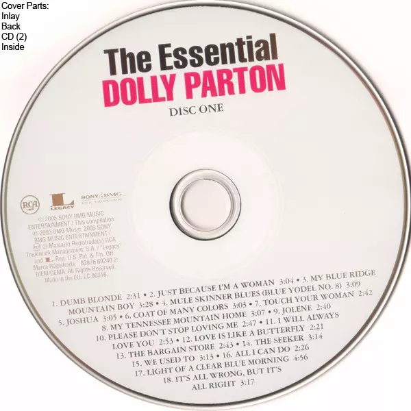 Dolly Parton: The Essential Dolly Parton version on 2CD in Standard edition. This particular edition was published in Europe in publishing company Sony BMG Music Entertainment in cooperation with RCA and Legacy on 28. June 2005.