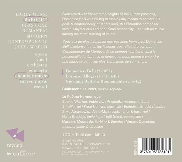 | Artist | Guillemette Laurens | Vincent Dumestre | Le Poème Harmonique | Domenico Belli |
