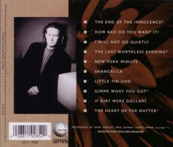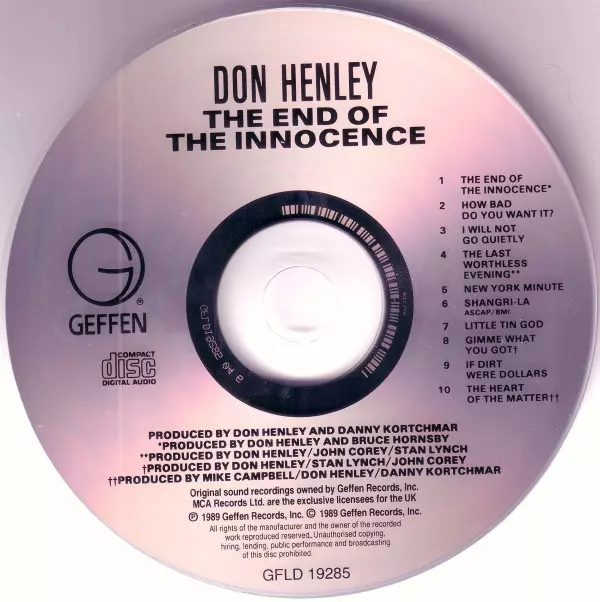Don Henley: The End Of The Innocence version on CD in Standard edition. This particular edition was published in United Kingdom in publishing company Geffen Records on 11. October 2021. Album spans genres Rock and Pop Rock.