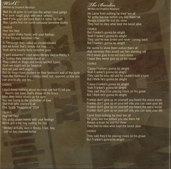 Dropkick Murphys are an American Celtic punk band formed in Quincy, Massachusetts, in 1996. The band is known for their loud, energetic live shows and for blending punk rock with traditional Irish music. The group's lineup has seen changes over the years, but Ken Casey has remained...