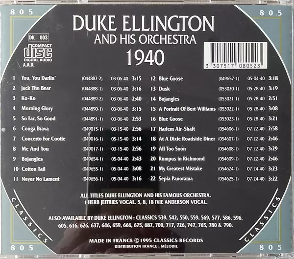 | Artist | Duke Ellington And His Orchestra |