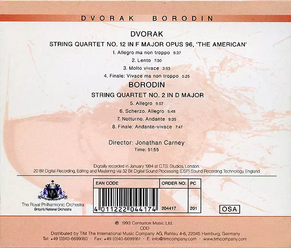 | Title | Dvorak: Quartet No. 12 In F Major, Opus 96, 'The American' / Borodin: String Quartet No. 2 In D Major |