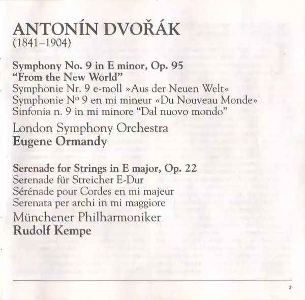 | Artist | Antonín Dvořák | Eugene Ormandy | Rudolf Kempe |