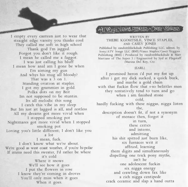 Engineer Syd (17) | Featuring Casey Veggies, Vince Staples | Producer Matt Martians, randomblackdude | Written-By Casey Jones (10), Thebe Kgositsile, Vince Staples