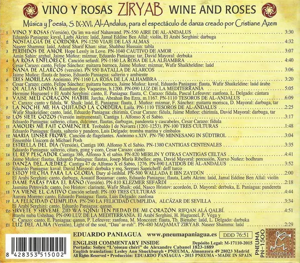 Title | Ziryab, Vino y Rosas - Música y Poesía, S. IX-XVI, Al-Andalus, para el espectáculo de danza creado por Crístíane Azem |