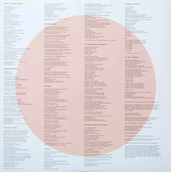 Cello Aniela Perry | Drums Scott McPherson | French Horn, Trombone John Mark Painter | Strings [Assistance With Strings & Conducting], Handclaps Michael Wells (13) | Violin Ben Fordham, Charlene Huang | Vocals, Keyboards, Bass, Percussion Lara Meyerratken