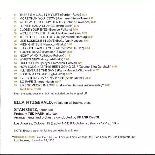 | Artist | Ella Fitzgerald | Frank De Vol And His Orchestra |