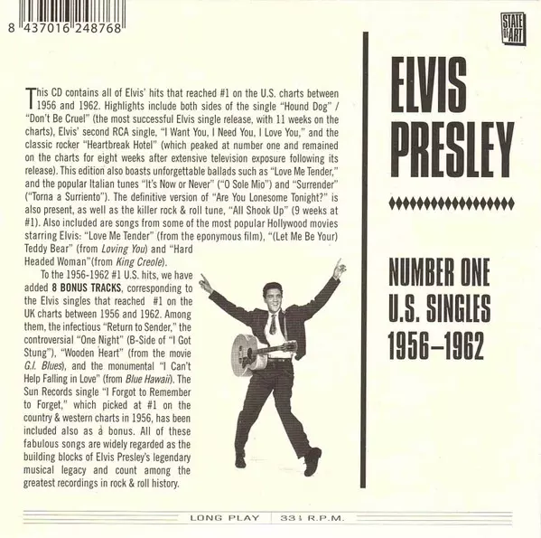 Elvis Presley: Number One U.S. Singles 1956-62 LTD version on CD in limited Remastered edition. This particular edition was published in publishing company State Of Art (2) on 19. May 2017.