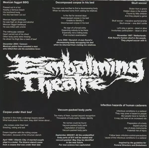 | Artist | Embalming Theatre |
