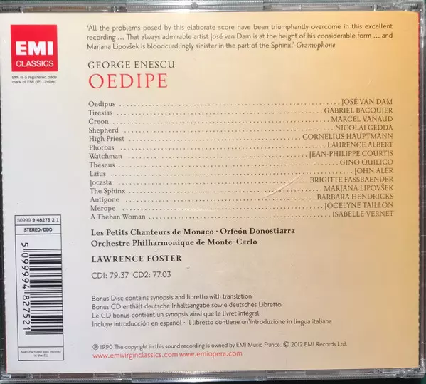 | More info | Reissue EMI Classics Jewelcase; bonus libretto & synopsis |