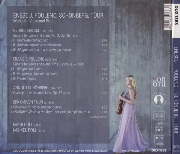 | Artist | Arnold Schoenberg | George Enescu | Francis Poulenc | Erkki-Sven Tüür | Mihkel Poll | Mari Poll |